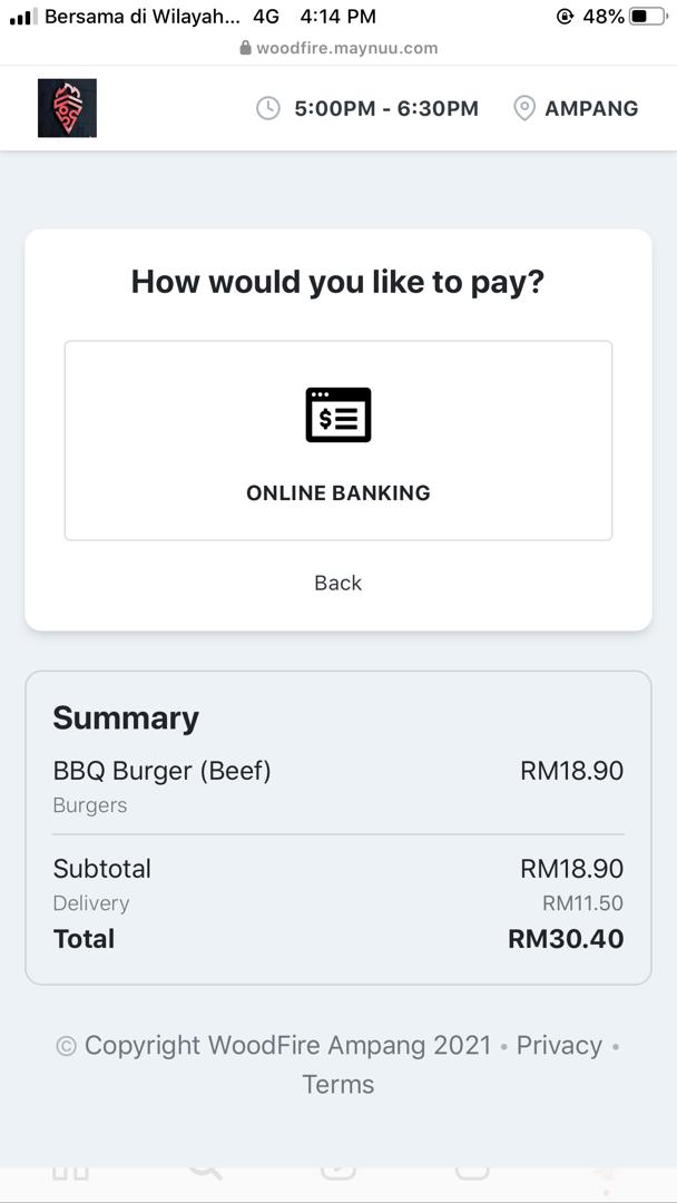 Keeping it simple but yet not forgetting the key messaging of the food selection is pivotal in ensuring its success. Head over to Maynuu to set up an online ordering website for your food and beverage business. It’s a simple and comprehensive online ordering system for the food and beverage business where it comes with seamless online payments and delivery without sacrificing your profits. There are also other notable online ordering channels such as Orderla, Yezza, KiahStore, and WhyQ. These platforms will provide you with a URL where you are able to easily share with your customers on your website, social media, or messaging platforms. e.g. Minang Kapau, WoodFire Ampang, SorruStation, Tokwan Nasi Ayam Golek, EatSetiawangsa.