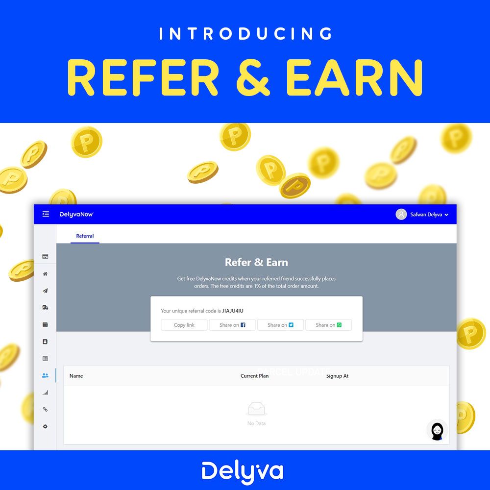 We’re just launched our referral program! If you’re a user of our DelyvaNow platform, you can now invite your friends to DelyvaNow and earn free credits / money.